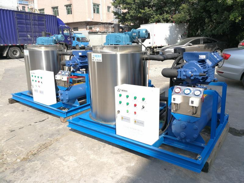 海水片冰機(jī)是采用海水直接在漁船上制冰進(jìn)行生產(chǎn)作業(yè)的方式。但海水的腐蝕,船舶的搖擺,續(xù)航時間長及氣候環(huán)境惡劣等因素,制約了海水片冰機(jī)的正常工作。海巨公司根據(jù)世界各市場狀況、各氣候條件、各海域差異等因素,經(jīng)過反復(fù)實驗,研究出適合大型船舶用的片冰機(jī)制造技術(shù),可適用于多種不同型號的遠(yuǎn)洋漁船。